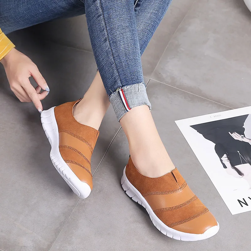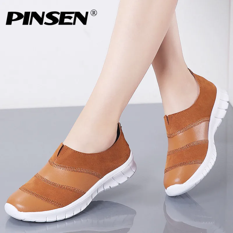 Best Price Pinsen Autumn Fashion Flat Women Shoes Genuine Leather Casual Sneakers Shoes Woman Slip-On Loafers with FREE Shipping Worldwide!