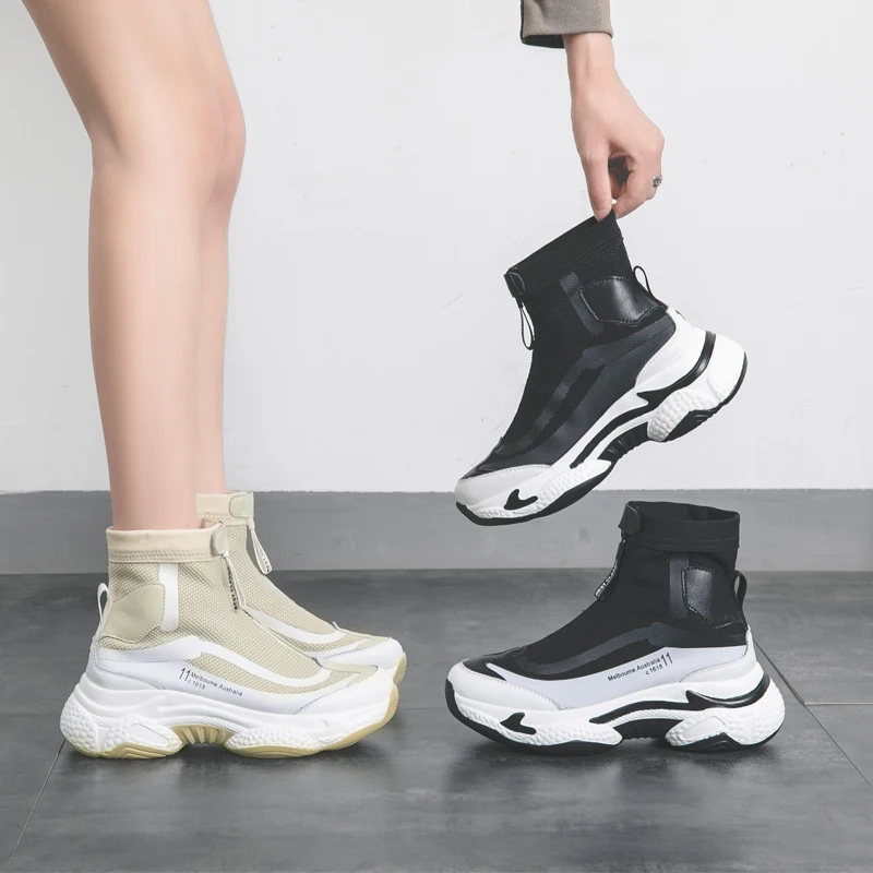 Special Price Rasmeup Fashion Woman Chunky Sneakers Zipper Breathable Women Platform Shoes Trainers Lady Bla with Free Worldwide Shipping!