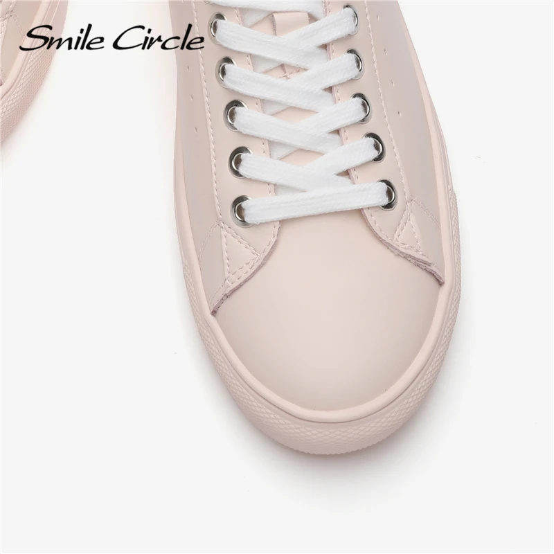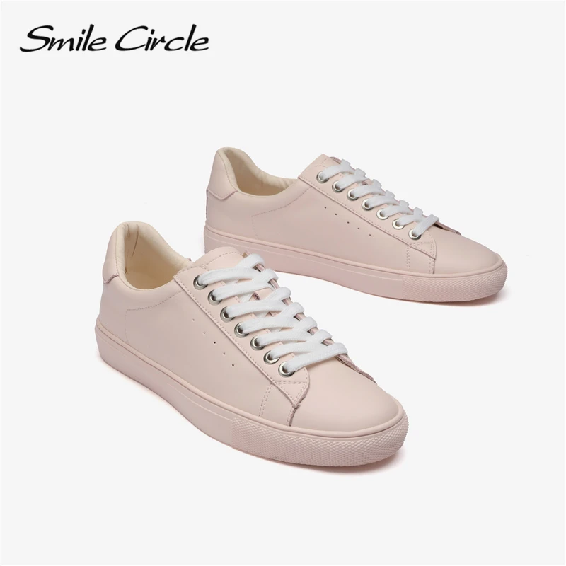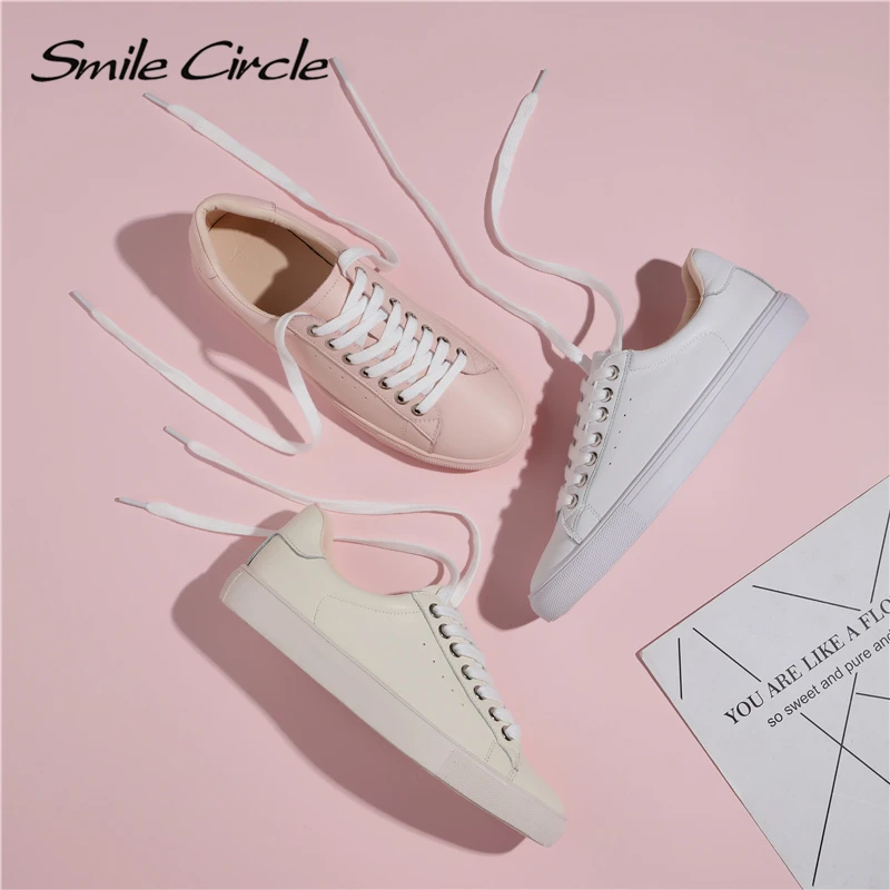 Limited Price Smile Circle White Sneakers Women Genuine Leather Low-Heel Flat Platform Ladies Lace-Up Fashion Whi with FREE Worldwide Shipping!