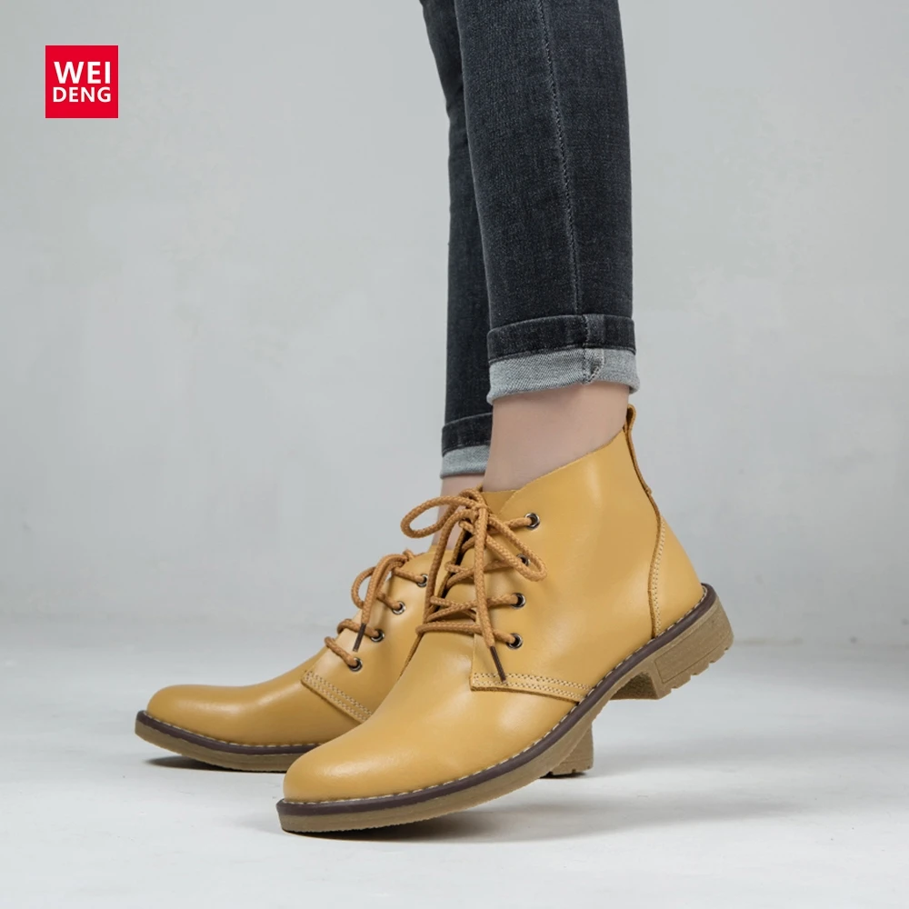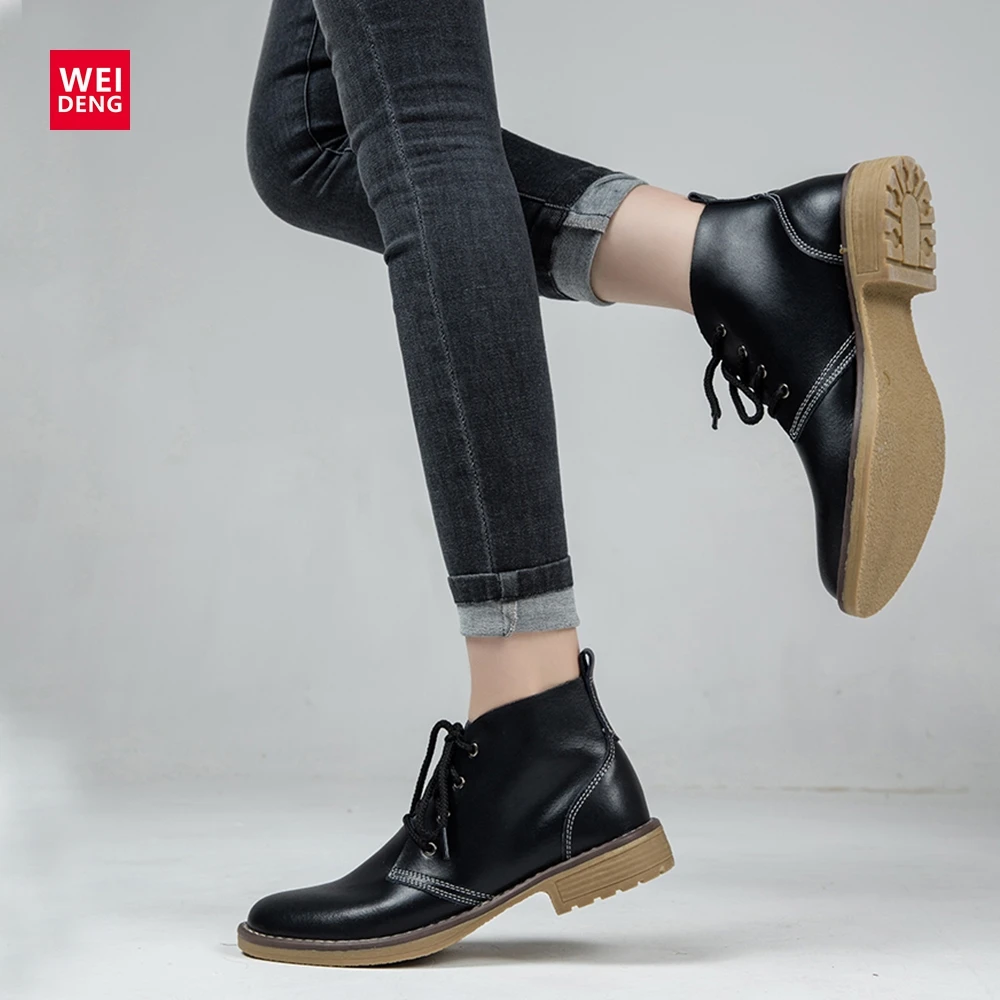 Weideng Genuine Leather Ankle Boots Women Classic Matin Fashion Flats Winter Lace Up High Top Casual Waterproof Shoes Female