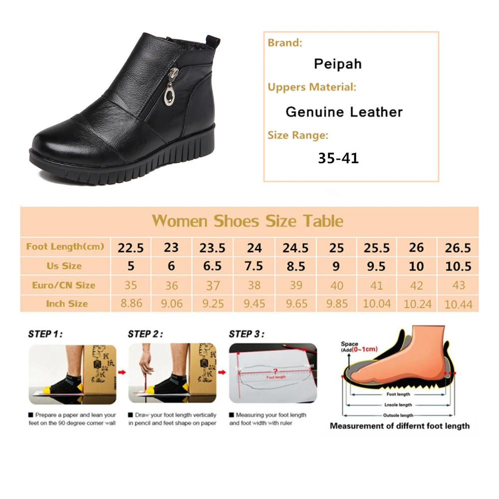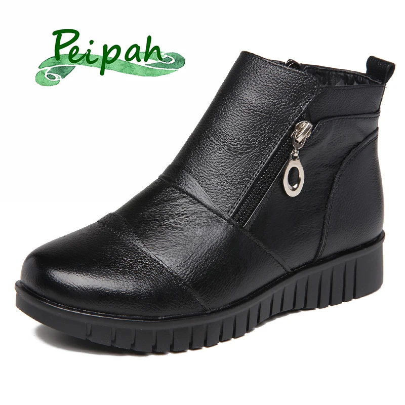 Peipah Handmade Autumn/Winter Boots Women Genuine Leather Shoes Woman Ankle Boots Solid Zip Casual Snow Botas Mujer Female Shoes