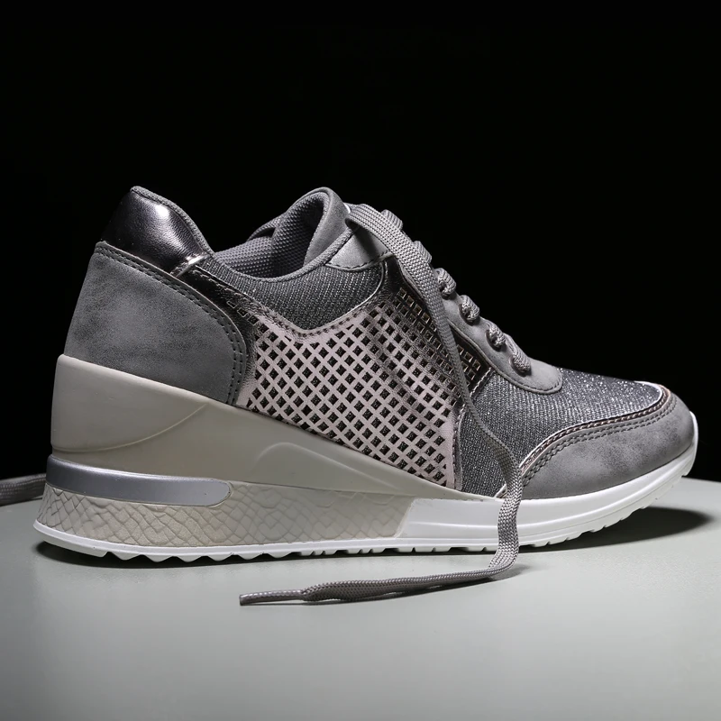 Women Height Increasing Walking Jogging Sneakers 6.5 Cm Increase Gold Silver Ladies Sport Running Shoes Athletic Girl Shoes