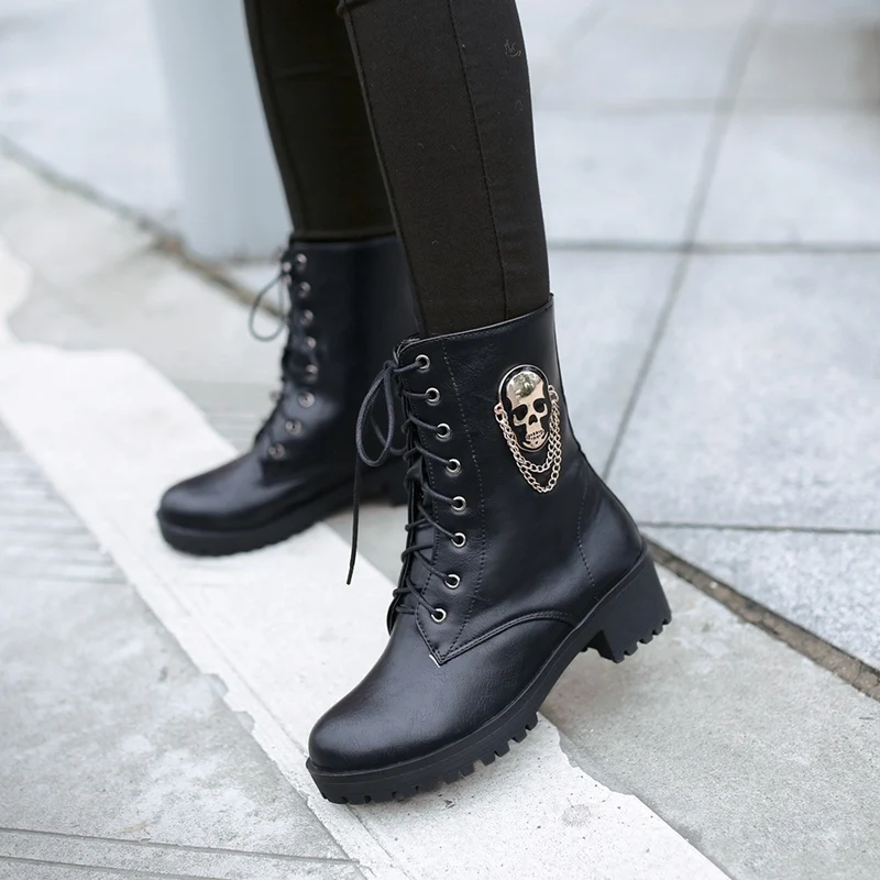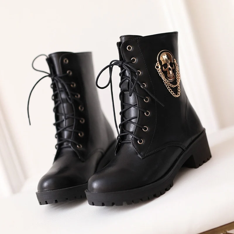 Special Offer Morazora Ankle Boots For Women Skull Street Lace Up Platform Women's Boots Fashion La with Free Worldwide Shipping!
