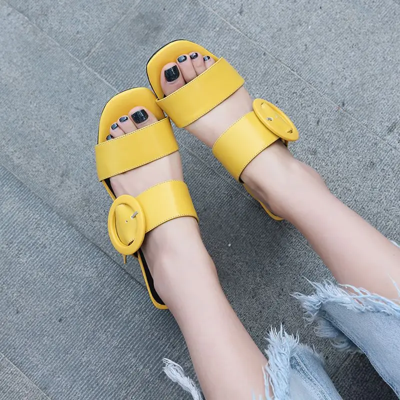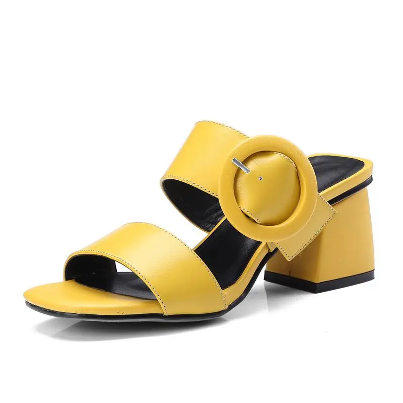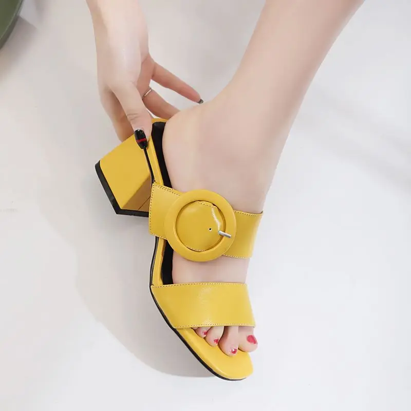 Best Price Morazora Plus Size Genuine Leather Sandals Women Slippers Square High Heels Summer Shoes Buck with FREE Shipping Worldwide!