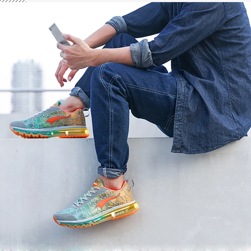 Onemix 2019 Running Shoes For Men Soft Air Cushion Breathable Knitted Vamp Male Outdoor Athletic Jogging Shoes Walking Sneakers