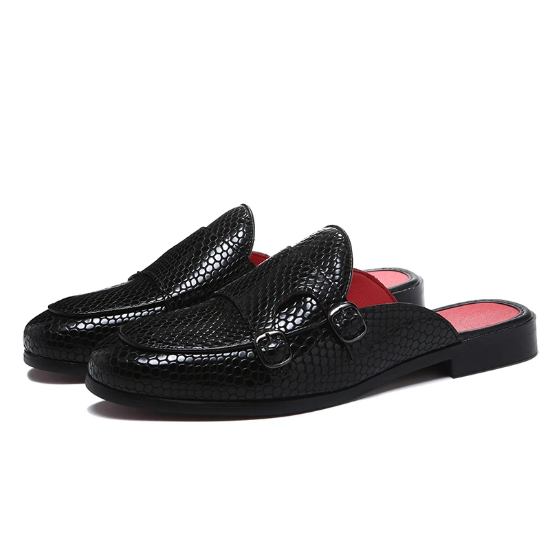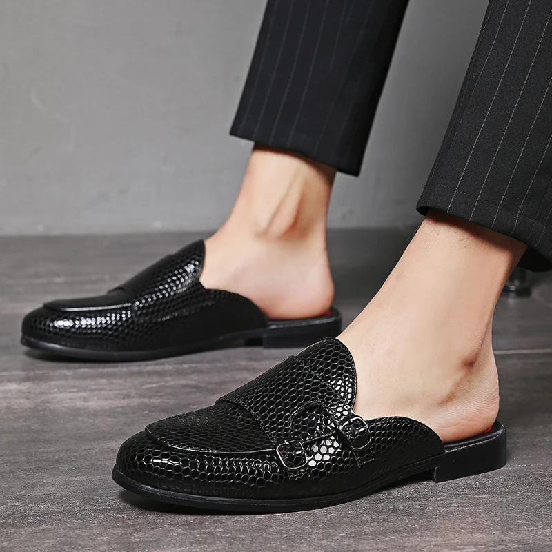 Limited Price Snake-Grain Pattern Men's Slip-On Dress Slippers On Backless Loafers Open-Back Monk Strap Loafers S with FREE Worldwide Shipping!