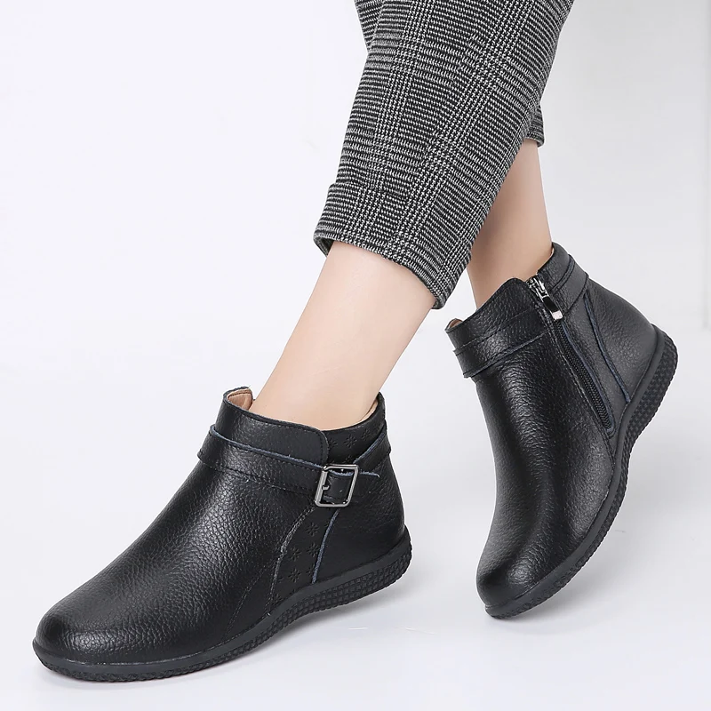 Best Price Spring Women Winter Boots Snow Shoes Genuine Leather Slip On Women Chelsea Ankle Boots Flat Shoes S with Free Shipping Worldwide!